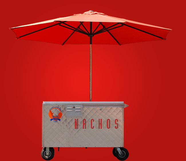 Ihre eigenen Brandings sind auf der Verzehrsverpackung & Servietten gegen Aufpreis möglich. Es stehen zwei verschiedene Größen an Nachos-Ständen zur Verfügung. Beide Stände sind mit verschiedenen Schirmen (Farbe: gelb, terra oder rot / weiß) oder einem Ruck Zuck Zelt buchbar.